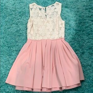 Cute summer dress. Fitting up top but flows out on the bottom. Been worn a couple times, but no stains or rips