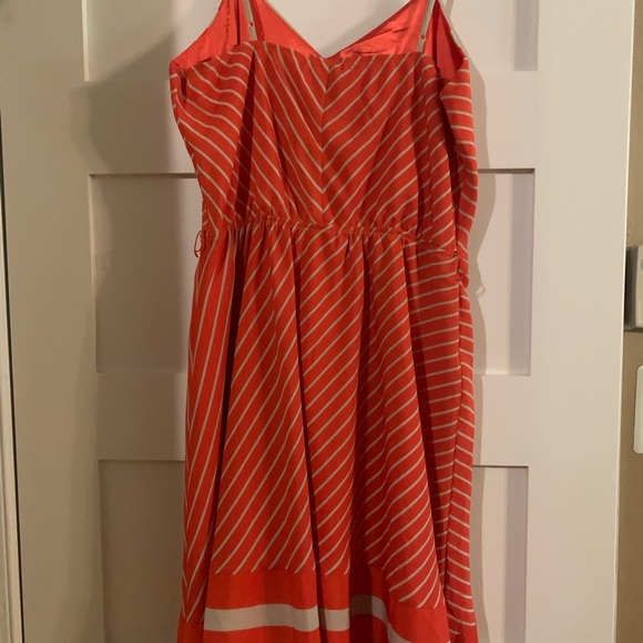 Burnt orange and beige striped asymmetrical hem mini dress