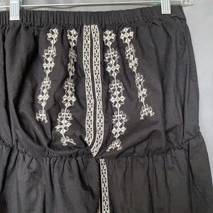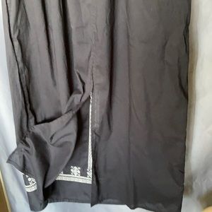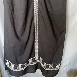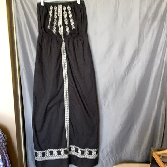 Long sleeveless dress with elastic above waist and slit in back with embroidery