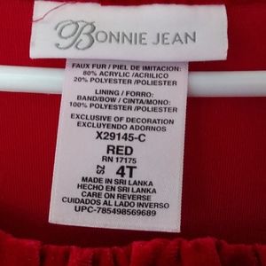 Beautiful red dress size 4T. Faux fur and velvety, tiny sparkles.