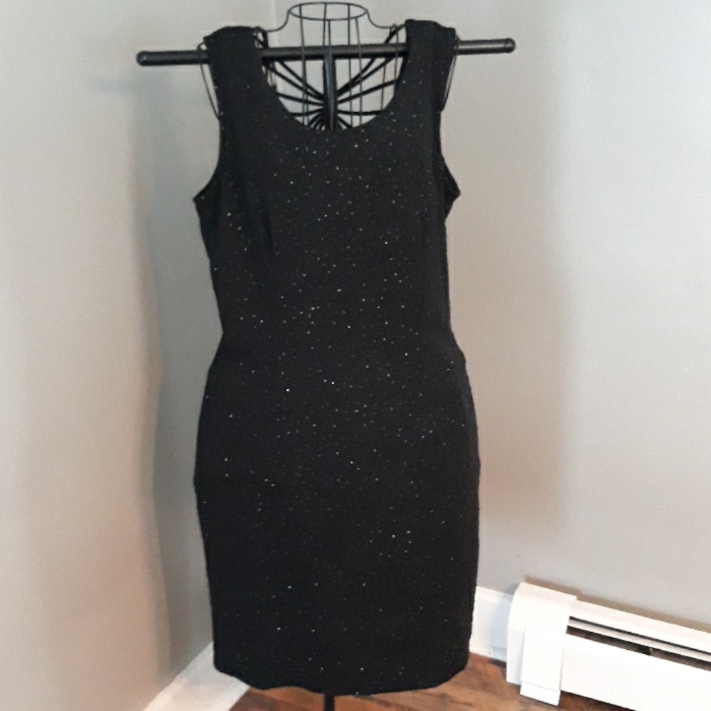 Black formalwear, sequins above the knee dress Zipper back, open design back with rhinestones, lightly worn