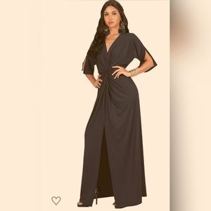 "Koh Koh" V neck casual maxi dress, size 2X, slate grey, 2 available, both NWT in original packaging, package of one is damaged due to trying on once