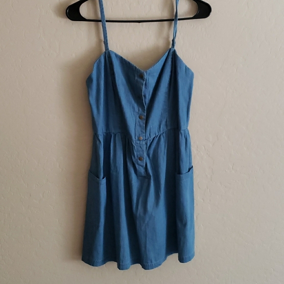 Short button up dress with pockets on the side never been used. Unable to return to store due to tags being off. Perfect condition.