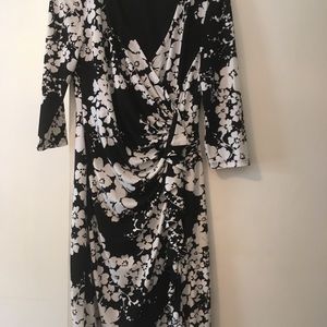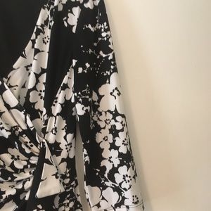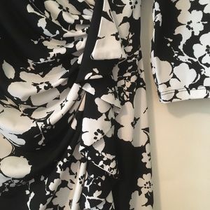 White & black, ruffles on the side, knee length, 3/4 sleeves