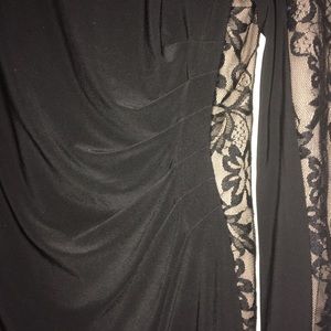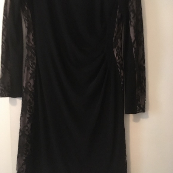 Elegant black dress, lined, lace on sleeves and sides, details on left side, knee length, can be used for different occasions, worn only one time, almost new