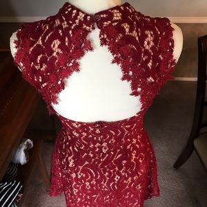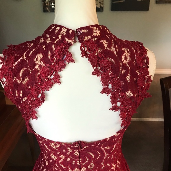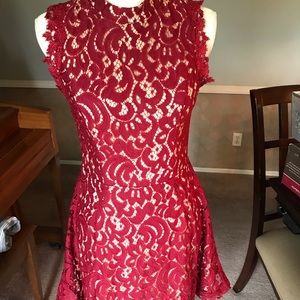 Absolutely beautiful party dress. Cotton lace over nude lining. Short sleeves keyhole back.