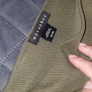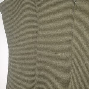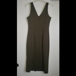 Olive green, semi bodycon dress. Has amazing stretch to it and is extremely comfortable. Has tiny spot with fabric pulling on the back (see last photo).