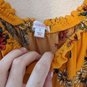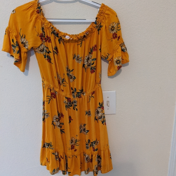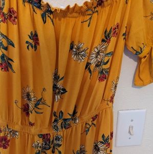 Flirty floral dress. Ruffles at the bottom and top. Can be worn as a off the shoulder dress. Never worn