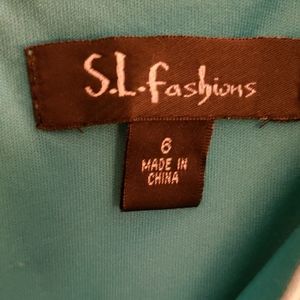 Turquoise and white fitted dress. Back zipper. Waist has ruching. Only worn once Matching shoes also available