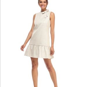 Neutral never means boring in our book...especially when the silhouette is as playful as our Philippa dress. We made this tank-style shift dress in a subtle creamy plaid extra special, thanks to a ruffle hem and a bow detail at the neck. New condition with tag.