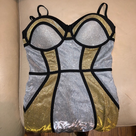 SWANK BLUE| Very sexy Silver & Gold dress. Perfect for a night out, or a theme party!