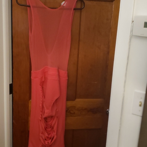 Tangerine body suit dress with slits up the front