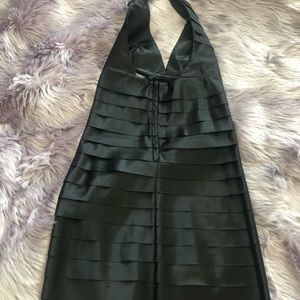 Black halter dress, zipper on back, ties at neck. brand new form fitting beautiful, never worn gift.