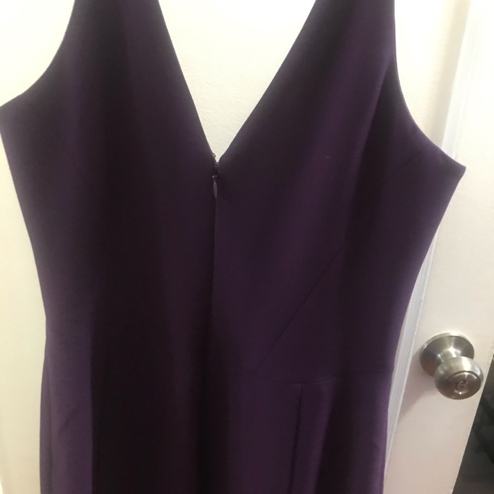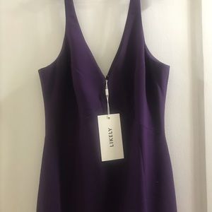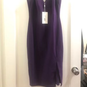 Likely brand dress. Brand new with tags, never been worn in deep plum. Back zipper closure. A little slit on the right side. Perfect for weddings, birthdays, etc...