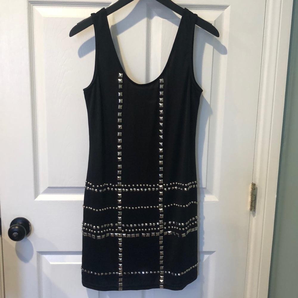 Brand new and never used. Black dress with studs. Cute for a night out.