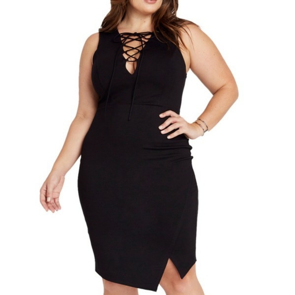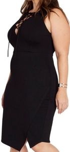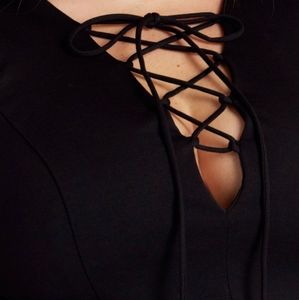 Solid black lace up dress with side split
