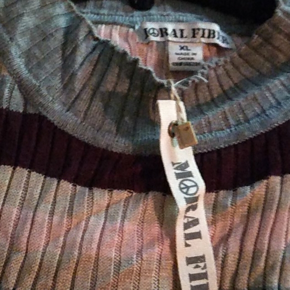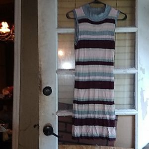 Beautiful mock neck sleeveless with side slits sweater dress. Burgundy, mauve, gray, beige striped. Juniors xl
