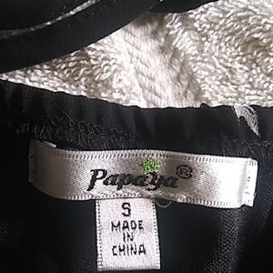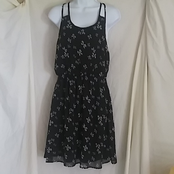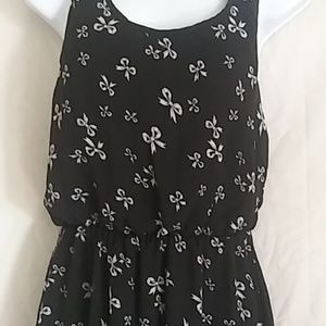 Black dress with white bows.