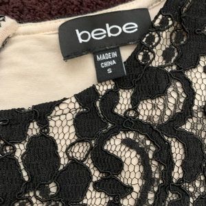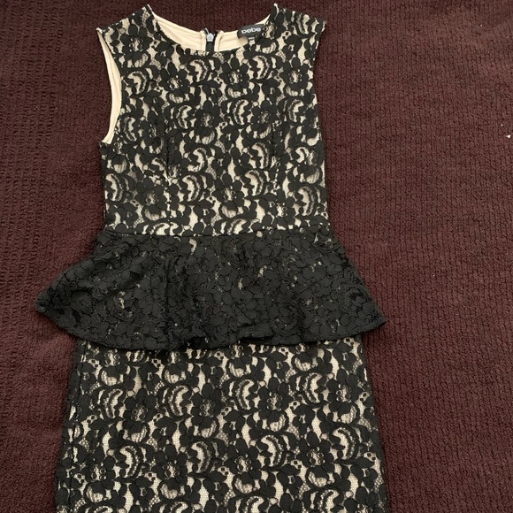 Bebe black, lace, back zip dress. Fully lined. This dress fits beautifully. Worn once. Size S.