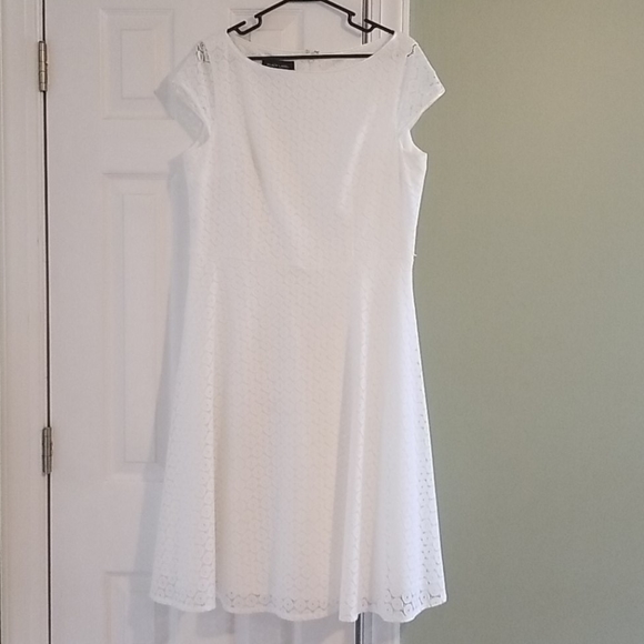 This is a beautiful white eyelet lace covered dress.