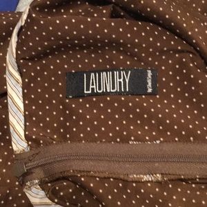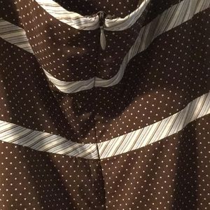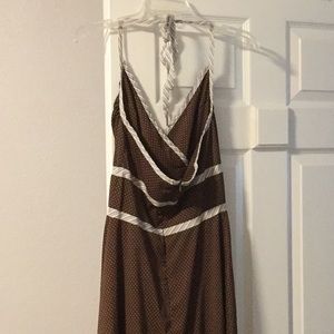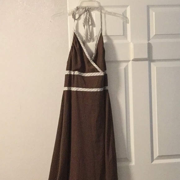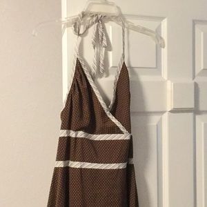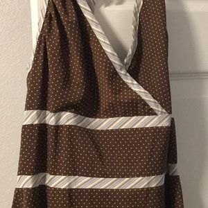 Ties around neck, zipper back, brown with polka dots