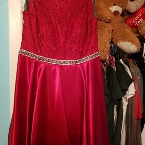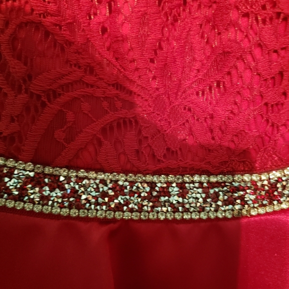 Deep red formal lace and satin... top lace skirt satin..used once for birthday party teen size