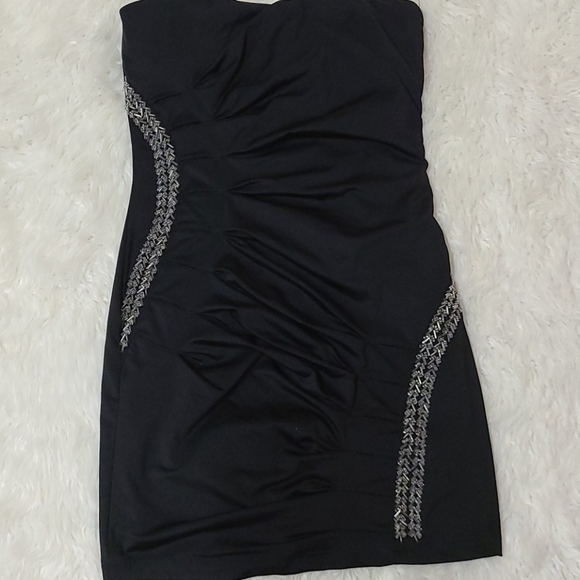 SMALL black strapless dress with sequins