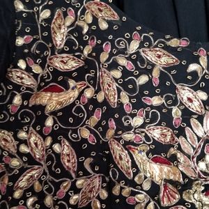 Fine georgette with goldwork cutwork black material and nice bottom trimmings with scarf