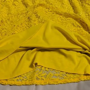 It's bright yellow in person The first picture is closest to the actual color Super soft Worn once No worn out spots