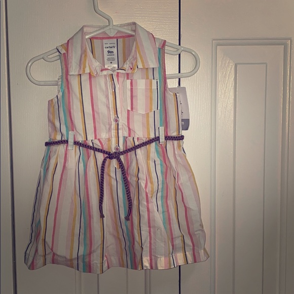 Size 9 month striped multicolored dress with belt attached