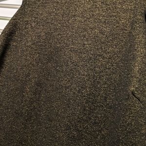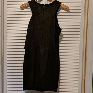 Black dress with gold shimmer. Zipper in back and fitted around chest area.