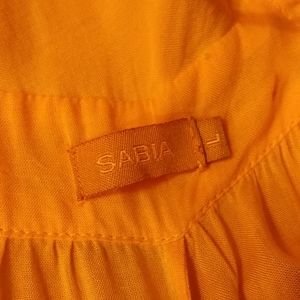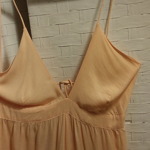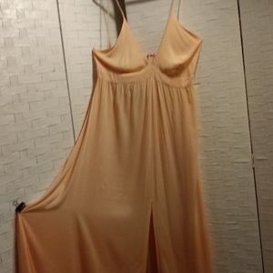 Ties back, front split. Wide flowing bottom. Slight ombre. Of light orange to pale pink. Size large. Sabia