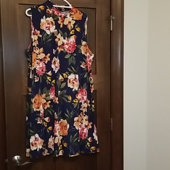 Tank top dress with turtle neck like collar. Nay blue in color with floral pattern, I am 5'10" and the skirt hits me right below the knees.