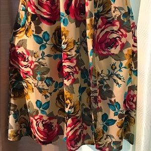 Rose print maxi dress. Stretch top. Pockets. Full floor length with left side slit.