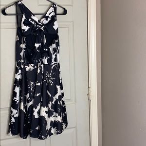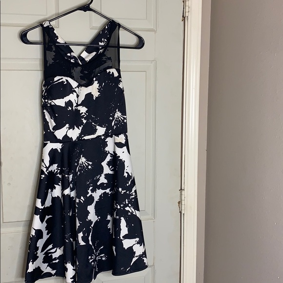 Black and white dress with cross back and mesh neckline