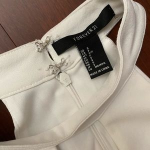 White fitted dress with embroidered red roses, no sleeves and collar is a bit high! Worn three times !