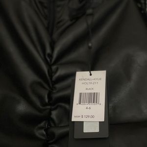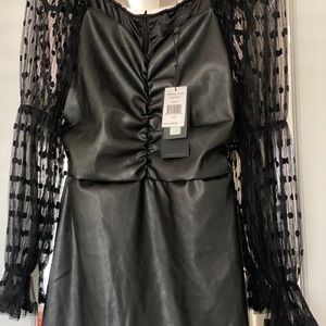 Classy black faux leather dress midi dress, with sheer/polka dot sleeves. Size 4-6. NEVER worn. Tags attached. Nordstrom Kendall + Kylie brand. As you can see it’s $130.