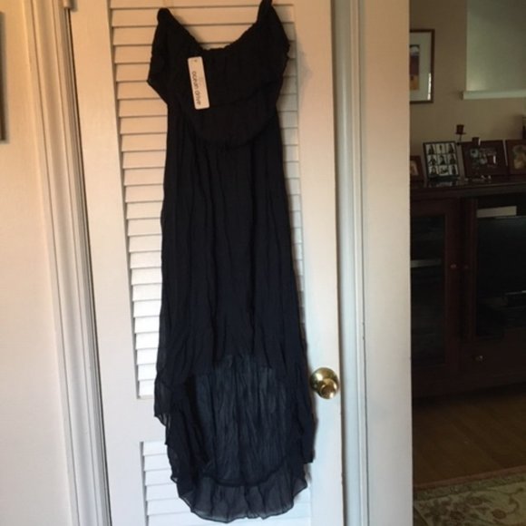 Navy strapless, gauze dress. Lovely for the Summer.