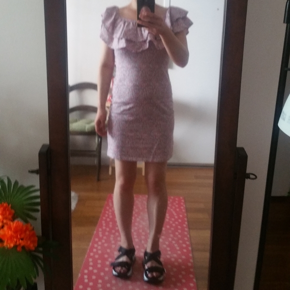 Small flower pattern cotton dress. It is stretchy fabric and elastic band for shoulders. Width : 15 inch Length : 30-31 inch