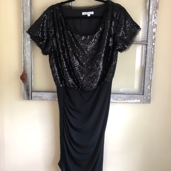 This dress has a sequin tshirt too and a fitted, stretchy skirt. It hits above the knee.