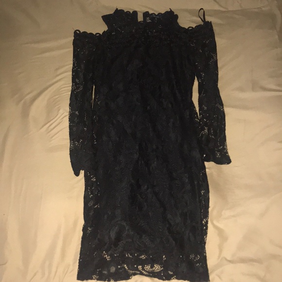 A black dress with flowery design on it Very new -only wore once Check it out 🔥🔥