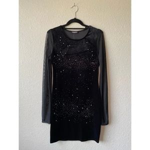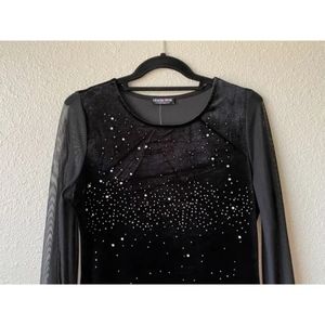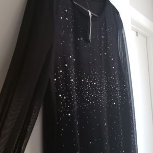 Black sparkle dress with see through sleeves size 1x fits like a 12-14