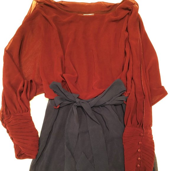 Beautiful maroon , navy blue dress. Colors in the second photo are accurate in real life. Open sleeves, adjustable waist tie.