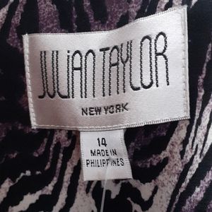 Purple knit with zebra design on top, gathered in front, Julian Taylor New York design, size 14