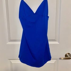 Blue dress, I love the way it fits, stretch to the body with rounded on the side.