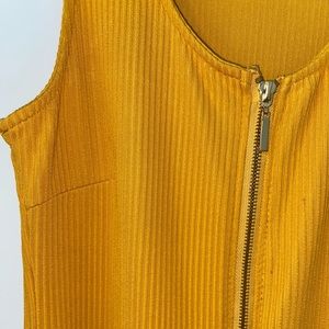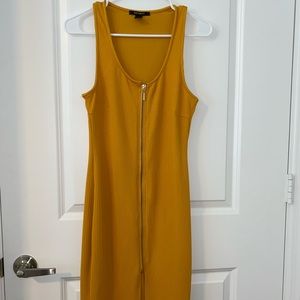 Gold dress with zipper in the front.