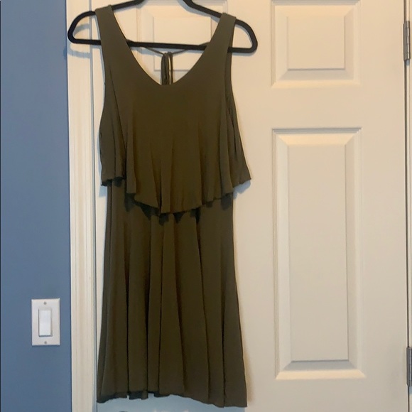 Dark green dress with tie in the bank.