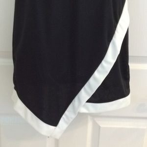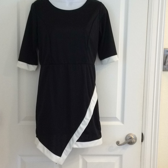 Dress or top,black stretchy knit with white trim on sleeves and along bottom.