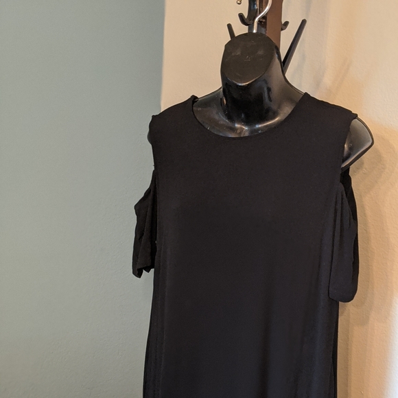 Black peek a boo shoulder dress, two side slits with pockets....fit m-lg