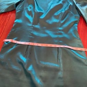 Emerald green satin cocktail dress three-quarter sleeves -beautiful button detail on gold over collar- fully lined .. Thank Grace Kelly in to "catch a thief"